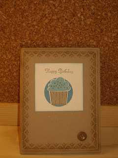 I first stamped the image on whisper white card stock and I used watercolor wonder crayons and an aqua painter to color it in. After it was done I ran it through the big shot in one of my favorite embossing folders(square lattice). After I decided which paint chip to use(you know I had to get more than one...ok more than a few lol),I decided to tear the sides to give it a more "natural" look....the straigh cut look just was not doing it for me. Now I didn't want to add too much to the card, but it still needed something to the back ground of the card. That is when I went I got out my color spritzer tool and markers. I spritzed my card a bit and it added just the right amount on the card stock to give it the look I was going for. I put the card together,added the saying, the button and my masculine card was complete.